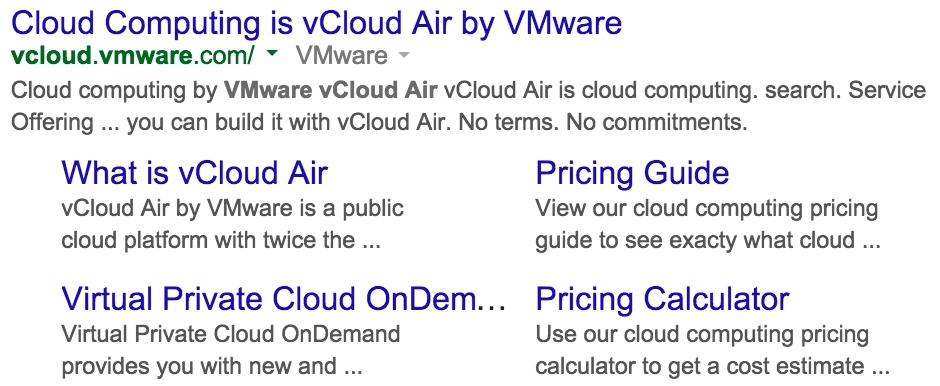 And even "VMware vCloud Air" ranking #1 with in-depth sitelinks: